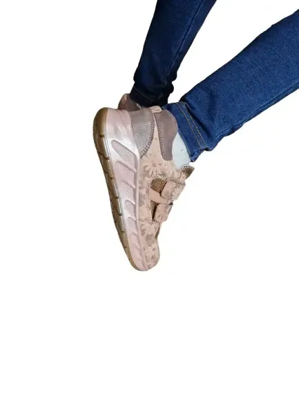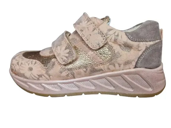 | Megnevezés Nem Szín Felsőrész Belső rész Talp Kialakítás Sarok Orr Használat Évszak | Átmeneti zárt cipő Lány Világosrózsa-arany-homok Valódi bőr Valódi bőr Gumi/Csúszásmentes Formatalp Stabil/Erősített Gumírozott Utcai használatra Ősz/Tavasz/Nyár |